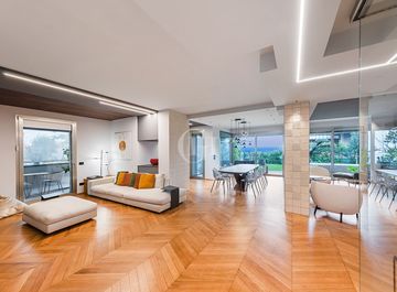 Inserita in un contesto riservato di sole sei unità residenziali, questa straordinaria abitazione quadrilocale...