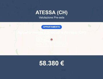 Appartamento in asta a Atessa (CH) – c. da Cona 22-81 (CAP 66041) Abitazione di tipo economico situata nel Comune di Atessa, in c. da Cona 22-81. Superficie e distribuzione interna L'unità immobiliare è costituita da un unico piano posto al piano sotto strada destinato a civile abitazione con corte esclusiva e accesso direttamente dalla strada comunale. La superficie è di 110 mq. Caratteristiche e dotazioni Contesto e collegamenti Dati principali...