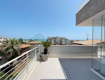 A soli 70 mt dalla spiaggia, all’interno di una palazzina di recente costruzione servita da ascensore, proponiamo in vendita un elegante trilocale con terrazzo angolare vista mare ed esposizione nord-est.