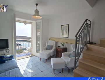 L’appartamento, inserito in un tranquillo condomino, in ottimo stato di manutenzione, è disposto al secondo piano e mansarda ed ospita al primo livello: un ampio e luminoso soggiorno con angolo cottura, che si affaccia con un grazioso balconcino panoramico sul Porto e sul mare, ed un primo bagno; al livello superiore mansardato, dotato di climatizzatore, si trovano 2 camere ed un altro bagno.