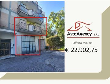 Descrizione sintetica: appartamento posto al piano primo con garage di mq 66,45 al piano terra. Si compone di ingresso, corridoio lungo sul quale si articolano i vari ambienti, soggiorno, cucina, sala pranzo, due camere, due bagni, due ripostigli, due balconi e un terrazzo coperto di totale mq 20,00.
