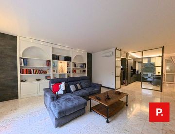 L'ingresso principale conduce ad un ampio e luminoso soggiorno, arredato con gusto e dotato di comodi divani, tavolo da pranzo e TV a schermo piatto.