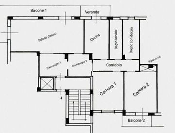 La distribuzione interna è razionale e facilmente personalizzabile: ingresso in doppio disimpegno, salone doppio, due camere da letto, cucina abitabile verandata, due bagni finestrati e ripostiglio.
