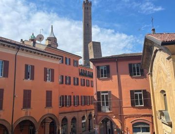 Nel centro di Bologna, sotto le Torri della Garisenda e degli Asinelli, all'interno di un magnifico palazzo di interesse artistico e storico, appartamento di 112mq affacciato su Via Zamboni. Si accede da un ampio ingresso alla cui destra si apre la zona notte composta da una camera matrimoniale e bagno con vasca mentre proseguendo attraverso un disimpegno con ripostiglio si entra in un ampio living di oltre 50mq con cucina, pranzo e soggiorno. Finiture...