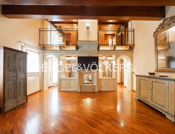 L’ingresso privato conduce a un salone di rappresentanza con soffitti alti e ottima esposizione alla luce naturale, sul quale si affaccia un soppalco funzionale, perfetto come area relax o studio.