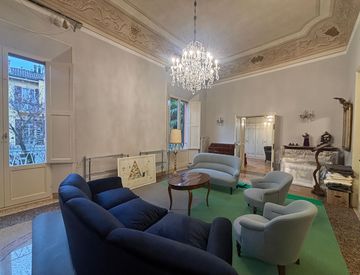 Gli alti soffitti decorati, le finiture originali e il design su misura creano un equilibrio raffinato tra passato e presente.