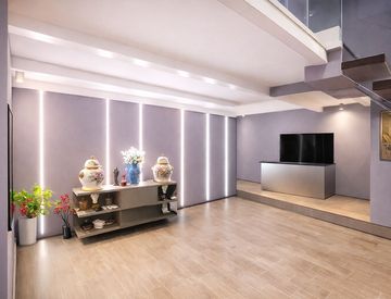 Il soppalco, destinato alla zona notte, è impreziosito da caminetto/stufa di design comandabile via app o telecomando. Sullo stesso livello è presente la TV con sistema motorizzato a scomparsa dal soffitto.