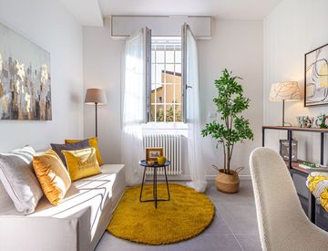 L’ingresso si apre su una luminosa zona giorno con angolo cottura, pensata per offrire uno spazio accogliente e funzionale. La zona notte ospita una camera da letto matrimoniale ben proporzionata, mentre il bagno, moderno e curato nei dettagli, completa la distribuzione interna. A servizio dell’abitazione è presente una comoda cantina.