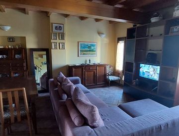 Al primo piano troviamo soggiorno spazioso con comoda cucina a vista, una camera da letto matrimoniale e un bagno completo di tutti i comfort con doccia e finestrato.