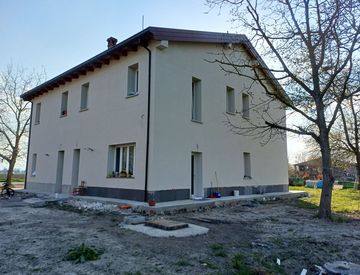 Calderara di Reno (BO) ad. ze immerso nella campagna ma non isolato, Vendesi in villa di sole tre unità abitative Appartamento al piano terra con ingresso indipendente di mq 95 composto da ampio salone, cucina, due bagni, due camere, GIARDINO PRIVATO di mq 250. Appartamento Nuovo da impresa di recente ultimazione, ottime finiture interne, struttura antisismica, riscaldamento a pavimento, predisposizione impianto fotovoltaico, aria condizionata, pompe...