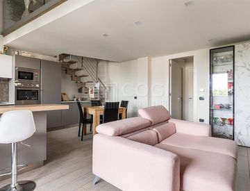 Appartamento in piccola palazzina di recente costruzione al secondo ed ultimo piano con ascensore. L'immobile, dotato di OTTIME FINITURE INTERNE, si compone di ingresso su zona giorno con soggiorno e cucina a vista e accesso al primo dei 3 terrazzi; disimpegno notte con armadio a muro, 2 camere da letto di cui una con accesso al secondo terrazzo, bagno finestrato. Tramite una comoda e bellissima scala arredo dal soggiorno si accede ad un soppalco...