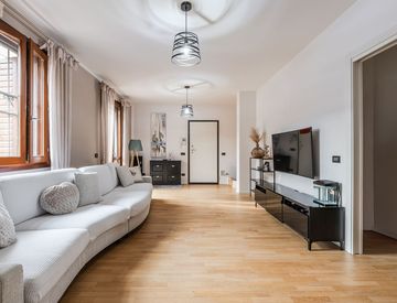 Gli interni sono curati nei minimi dettagli, con parquet in tutti i pavimenti (esclusi i bagni) e aria condizionata per il massimo comfort. Inoltre, il riscaldamento a pavimento garantisce un ambiente caldo e accogliente durante i mesi invernali.