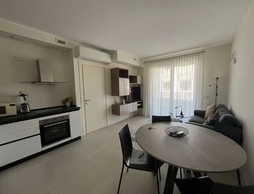 Ogni dettaglio è stato curato con attenzione, rendendo questo immobile completamente arredato e pronto per essere abitato. Gli spazi esterni non mancano: due balconi invitano a godere della brezza marina e della vista sul vivace quartiere circostante.