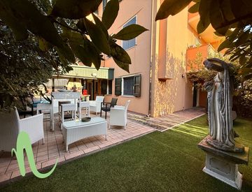 In palazzina di sole 6 unità, spazioso appartamento su due livelli con giardino privato, area coperta con caminetto ideale per pranzi e relax all'aperto.