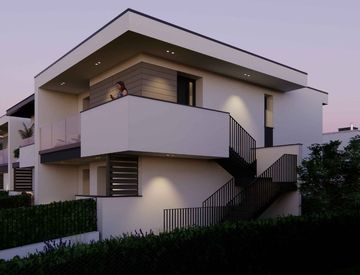 a pochi da Riccione vi proponiamo in vendita un appartamento trilocale al piano terra, di nuova costruzione, dotato di giardino privato, garage ampio collegato direttamente all’abitazione, logge coperte e impianto fotovoltaico autonomo.
