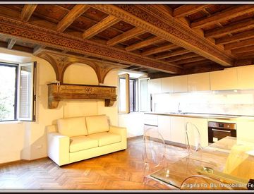 In Via Madama, appena ristrutturato, signorile appartamento di ampie dimensioni e composto da: ampio ingresso, soggiorno con angolo cottura, salotto, 2 camere e bagno. AMPIO GARAGE ESCLUSIVO. Finiture di lusso tra cui pavimenti e affreschi originali. Utenze autonome e climatizzato. Libero da giugno.