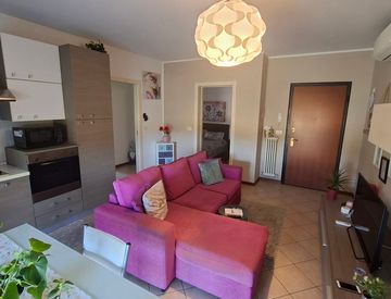 •comodo soggiorno con angolo cottura, due camere letto, un bagno, due logge, completano l’offerta cantina e autorimessa
