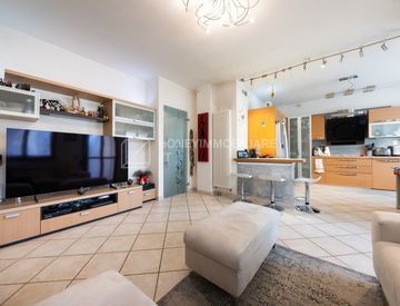La zona living, ampia e luminosa, è caratterizzata da cucina a vista e affaccio su due logge di 6 e 7 mq, ideali come estensione naturale della zona giorno.