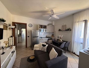 L'appartamento è composto da: ingresso, salotto con zona cottura, disimpegno notte, due camere da letto e bagno.