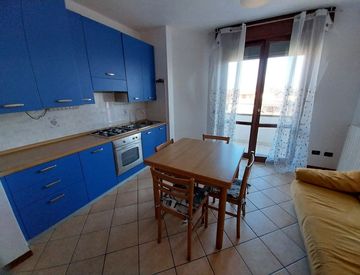 Finale Emilia. In bella posizione comoda al centro, appartamento posto al secondo e ultimo piano. Composto da ingresso, soggiorno con angolo cottura, terrazzo, disimpegno notte, camera matrimoniale e bagno. Ampio garage al piano terra. L'appartamento viene venduto ammobiliato, ideale come investimento.