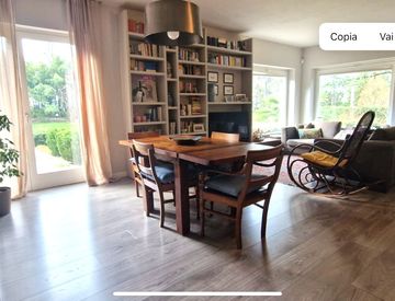 Granarolo dell'Emilia: In contesto signorile Appartamento al piano terra con giardino in villa storica: Piano terra- ingresso privato al giardino, sala, cucina, bagno, dispensa e ripostiglio; Piano primo- Camera matrimoniale con cabina armadio e bagno, 2 camere da letto singole, bagno; Piano interrato: Tavernetta con lavanderia.