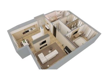 L'appartamento è composto da ingresso, ampia cucina abitabile, ampio salone con balcone, disimpegno notte dal quale si accede alle due camere matrimoniali, due bagni. Completa la proprietà la cantina al piano terra ed il garage non incluso nel prezzo.