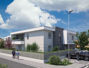 Novita' appartamento moderno al 1° piano con ampio terrazzo in piccola palazzina composto da: ingresso, ampio soggiorno + cucina spaziosa e luminosa in openspace con vista sul bellissimo terrazzo rifinito elegantemente dal parapetto in vetro, 2 camere da letto matrimoniali, 2 bagni / lavanderia e garage grande a piano terra. L' immobile ha finiture ottime e impiantistica di ultima generazione che riducono i costi di gestione. Classe energetica a4....