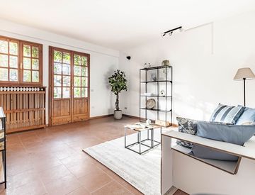 L'immobile, in ottimo stato di manutenzione interna, è caratterizzato dagli ampi spazi e dalla luminosità ed è composto da ingresso arredabile, ampio soggiorno di 17 mq, cucina abitabile servita da camino, disimpegno arredabile, tre camere da letto di cui una matrimoniale di 18 mq e due singole e ampio bagno finestrato con box doccia.