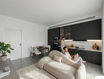 L’appartamento si sviluppa su una superficie di 44 mq commerciali ed è composto da una zona giorno con soggiorno e cucina a vista, uno spazio ben organizzato e luminoso, ideale per la vita quotidiana. Le grandi superfici vetrate garantiscono luce naturale e un collegamento diretto con l’esterno.
