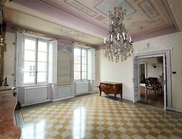 FAP01 - Parma Strada della Repubblica. Vendesi in splendido palazzo d'epoca appartamento arredato con mobili di pregio Posto al piano secondo con ascensore si compone da ampio ingresso, doppio salone con due camini entrambi con affaccio su Strada della Repubblica, ampia cucina con ingresso di servizio prospicente la loggia di cui una parte è ad uso esclusivo, due camere matrimoniali di cui una con bagno, altri due bagni, disimpegno con armadi a muro....