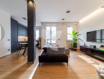 Ti accoglie un trilocale curato in ogni dettaglio, dove ogni elemento è stato scelto per semplificarti la vita e alzare il livello della tua quotidianità: