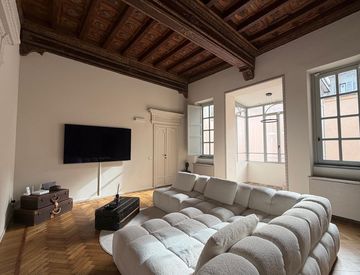 Centro storico - In palazzo nobiliare di recentissima ristrutturazione appartamento elegantemente rifinito con ingresso soggiorno, pranzo, cucina abitabile, doppi servizi. Cucina completa di arredi ed elettrodomestici, armadi in dotazione. Termoautonomo e aria condizionata. Posto auto coperto info c/o ufficio.