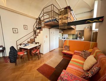 Siamo dentro un contesto storico recuperato nei primi anni 2000, dove il fascino dell’edificio originale incontra una ristrutturazione già pronta da vivere, senza pensieri. Quando varchi l’ingresso, ti accoglie una zona giorno aperta, fluida, dove cucina e living convivono senza barriere, perfetta per chi ama vivere la casa in modo spontaneo, tra una cena improvvisata e una serata che si allunga senza orari.