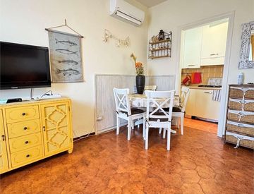 Questo immobile, ben rifinito, si trova vicino al mare ed è così composto: giardino privato di circa 30mq, balcone, sala con angolo cottura separato, disimpegno, due camere da letto, di cui, una matrimoniale e una singola, bagno.