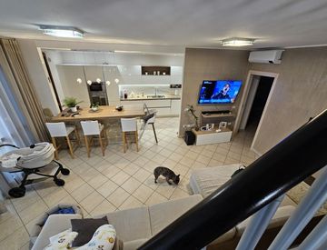 Villanova - in conteso residenziale di recente costruzione app. To in villetta con riscaldamento a pavimeto ed ottime finiture. Ingresso. Ampia e luminoso zona giorno con salotto e cucina a vista ed affaccio su balcone. Nella zona notte camera da letto matrimoniale e singola servite da secondo balcone, bagno finestrato. Dalla zona giorno, con scala arredo ampia e vivibile mansarda con ripostigli e bagno/lavanderia. Due posti auto. Completo di arredo....