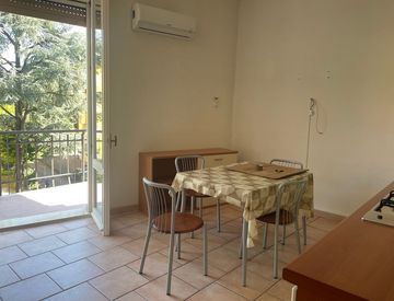 L'appartamento è composto da un ampio ingresso con armadio a muro, soggiorno con angolo cottura con cucina arredata e affaccio su un ampio terrazzino abitabile, 1 camera matrimoniale, 1 camera singola, bagno e cantina.