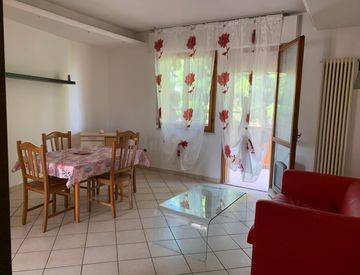 E' composto da ingresso su soggiorno, cucina a vista ampliata da una veranda, due camere da letto e un bagno. No ascensore
