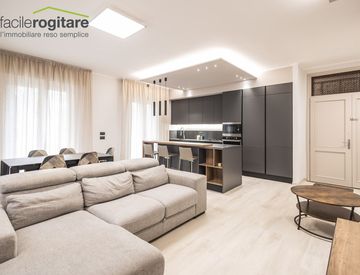 L’appartamento, di circa 105 mq, accoglie con un ingresso che si apre su un ampio soggiorno luminoso, dove la zona living si fonde armoniosamente con una moderna cucina open space. Gli spazi sono stati progettati per offrire comfort e funzionalità, con accesso diretto al balcone, uno spazio in più da vivere in ogni momento della giornata.