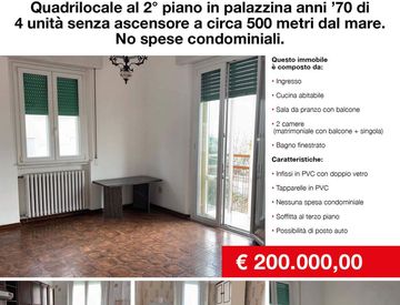 Proponiamo quadrilocale al secondo piano in palazzina degli anni '70 di sole 4 unità,