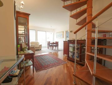 L'appartamento, disposto su due livelli, è situato al terzo e quarto piano di una palazzina curata del 2006.