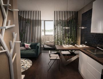 L'immobile ha un unico locale con possibilità di dividerlo in due ambienti separati zona giorno / camera da letto, il bagno presenta sanitari in sospensione e box doccia.