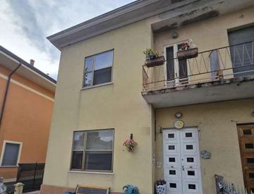 Appartamento composto, al piano terra, da ingresso, sala, bagno, cucina e retro; al piano primo, da corridoio, terrazzo con tettoia, tre camere; al piano sottotetto, da w. c. e soffittagarage al piano terra della superficie catastale di metri quadrati dodici.