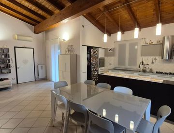 Rottofreno- Proponiamo in vendita bellissimo appartamento posto al piano primo di una palazzina di solo 4 unità. L'appartamento finemente rifinito e impreziosito dagli alti soffitti con travi in legno lamellare, è composto da: ampio salone con accesso alla terrazza coperta, cucina a vista con penisola a vista, disimpegno, 2 camere da letto matrimoniali con balcone e cabina armadi, un servizio finestrato con doccia.