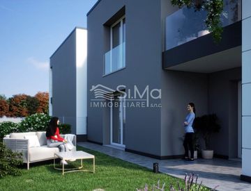 In nuova lottizzazione comoda a tutti i servizi, proponiamo un appartamento di prossima costruzione, posto al piano terra con giardino di proprietà di 170 mq e composto da ingresso su soggiorno con cucina a vista di oltre 30 mq, terrazza, due bagni e tre camere da letto. Al piano terra è presente un'autorimessa collegata al vano scale, due posti auto scoperti esclusivi-