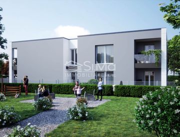 In nuova lottizzazione comoda a tutti i servizi, proponiamo un appartamento di prossima costruzione, posto al primo ed ultimo piano e composto da ingresso su soggiorno con cucina a vista di oltre 30 mq, una terrazza, due bagni e due camere da letto. Al piano terra è presente un'autorimessa collegata al vano scale, un posto auto scoperto esclusivo ed un giardino di proprietà.