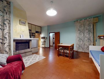 Ingresso su ampio soggiorno con balcone dove, data l'ampia metratura, è stata ricavata un'ulteriore stanza utilizzabile come terza camera da letto, infine nella zona giorno troviamo cucina abitabile con balcone.