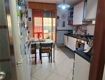 Zona Giorno: Ampio ingresso, sala principale luminosissima con camino e balcone, cucina separata abitabile con balcone di servizio. Piccolo ripostiglio.