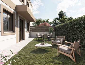 In Nuova palazzina di sole 7 UNITA' in "classe energetica A4", immersa nel verde, comoda al centro commerciale "Il Melograno" e a tutti i servizi, proponiamo in vendita APPARTAMENTO al piano terra con INGRESSO INDIPENDENTE e GIARDINO ANGOLARE di 230 MQ circa. L'immobile è composto da soggiorno con angolo cucina (separabile in abitabile), 3 CAMERE da letto, 2 BAGNI, GARAGE e POSTO AUTO PRIVATO compresi.