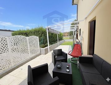 Fontanafredda periferia, appartamento del 2002 in piccola palazzina, recentemente rinnovato, al piano terra con scoperto esclusivo. Composto da sala con cucina separata, tre camere, due bagni, cantina, garage e posto auto scoperto.