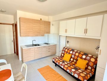 L’appartamento è ben tenuto e funzionale, composto da ambiente unico con angolo cottura, bagno completo di doccia e bidet e terrazza ideale per momenti di relax all’aria aperta.